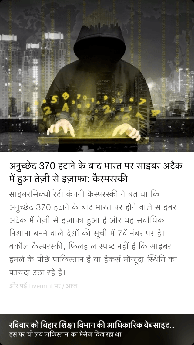There has been a rise in cyber attacks on Indian institutions after the abrogation of Article 370 and 35A and the country needs to be extra careful when it comes to the security of websites and critical infrastructure, Russian cyber security firm Kaspersky said on Monday.