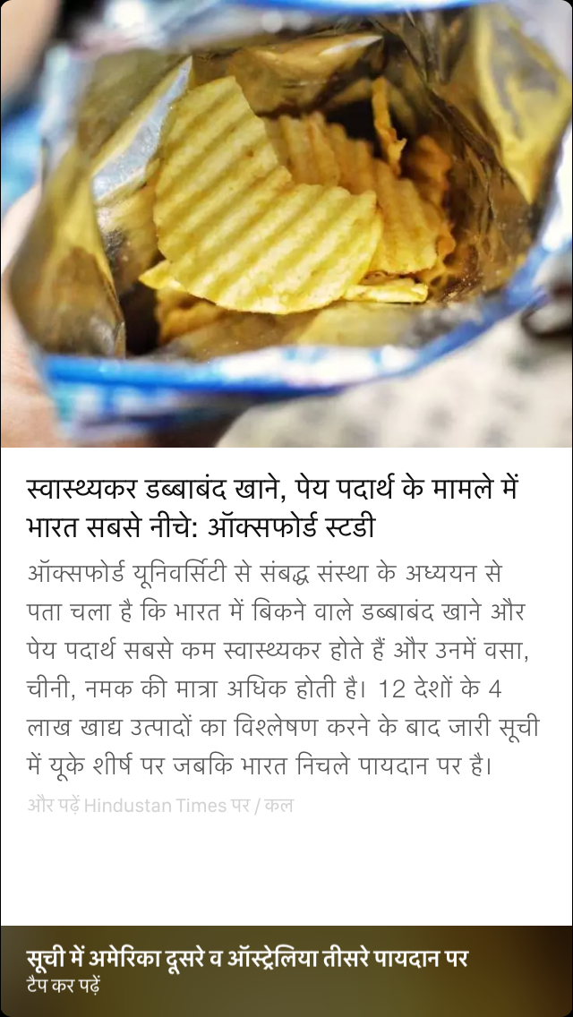 A global study at the University of Oxford has found that packaged foods and drinks available in India are the least healthy, with high levels of saturated fat, sugar and salt.