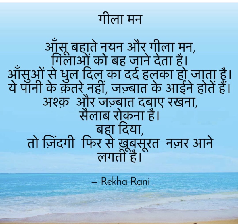 यह ख़ूबसूरत तस्वीरों वाली हिंदी कोट्स और कविताओं की किताब है। यह ऐमज़ान और फ्लिपकार्ट पर रेखा रानी की नाम से उपलब्ध है।
