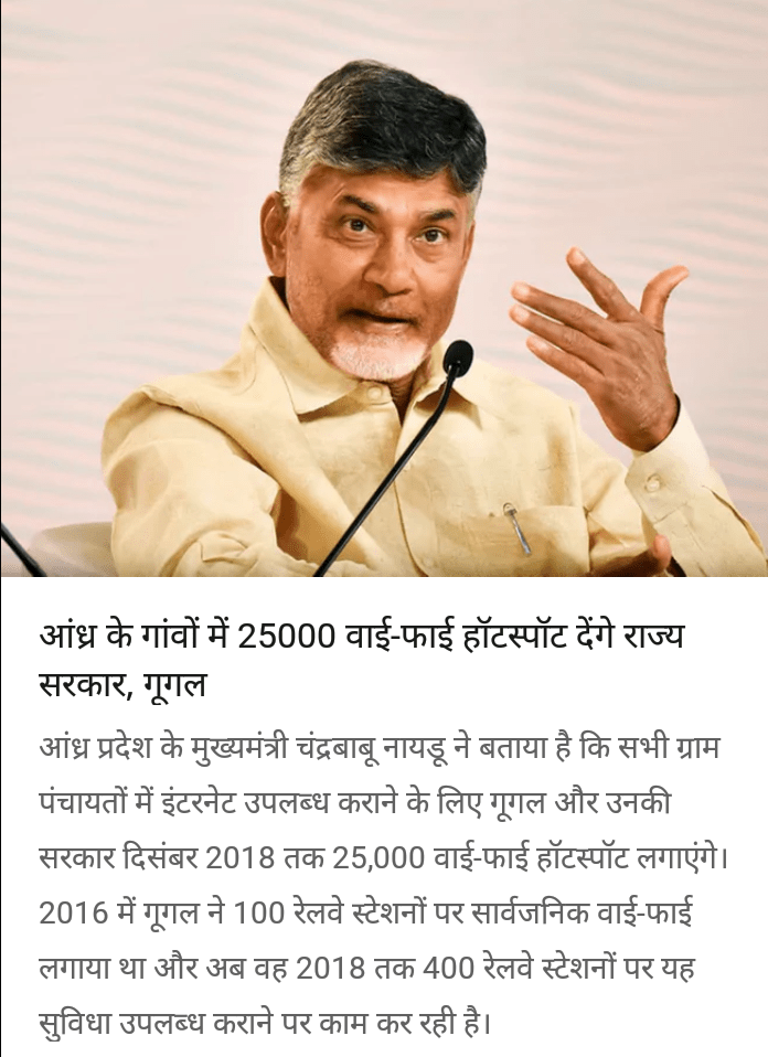 Google and Andhra government to set up 25000 wi-fi hotspots in villages by end of 2018
