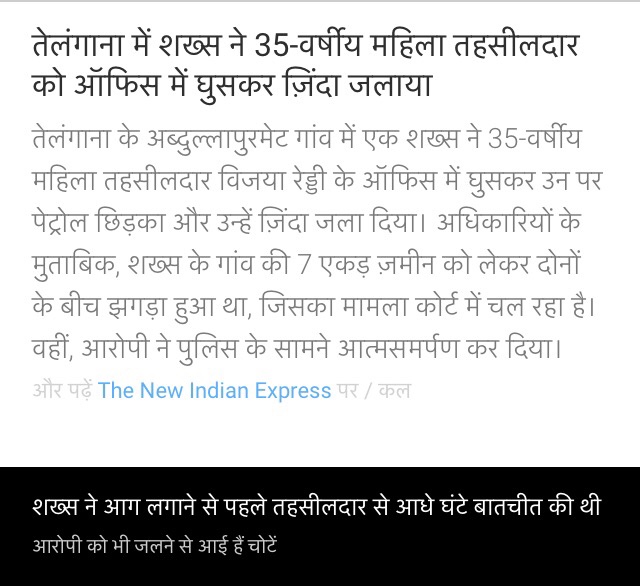2. News in detail –Driver Of Telangana Revenue Official, Burnt Alive By Land Owner, Dies